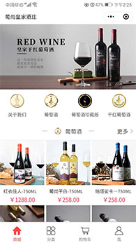 紹興葡尚皇家酒莊小程序是紹興魔方網(wǎng)絡(luò)科技有限公司2019年度開(kāi)發(fā)的微信小程序,小程序頁(yè)面設(shè)計(jì)時(shí)尚簡(jiǎn)潔,是愛(ài)品味紅酒和收藏紅酒購(gòu)買(mǎi)小程序,開(kāi)發(fā)了首頁(yè)商城、分類(lèi)、購(gòu)物車(chē)、我的中心等等模塊。